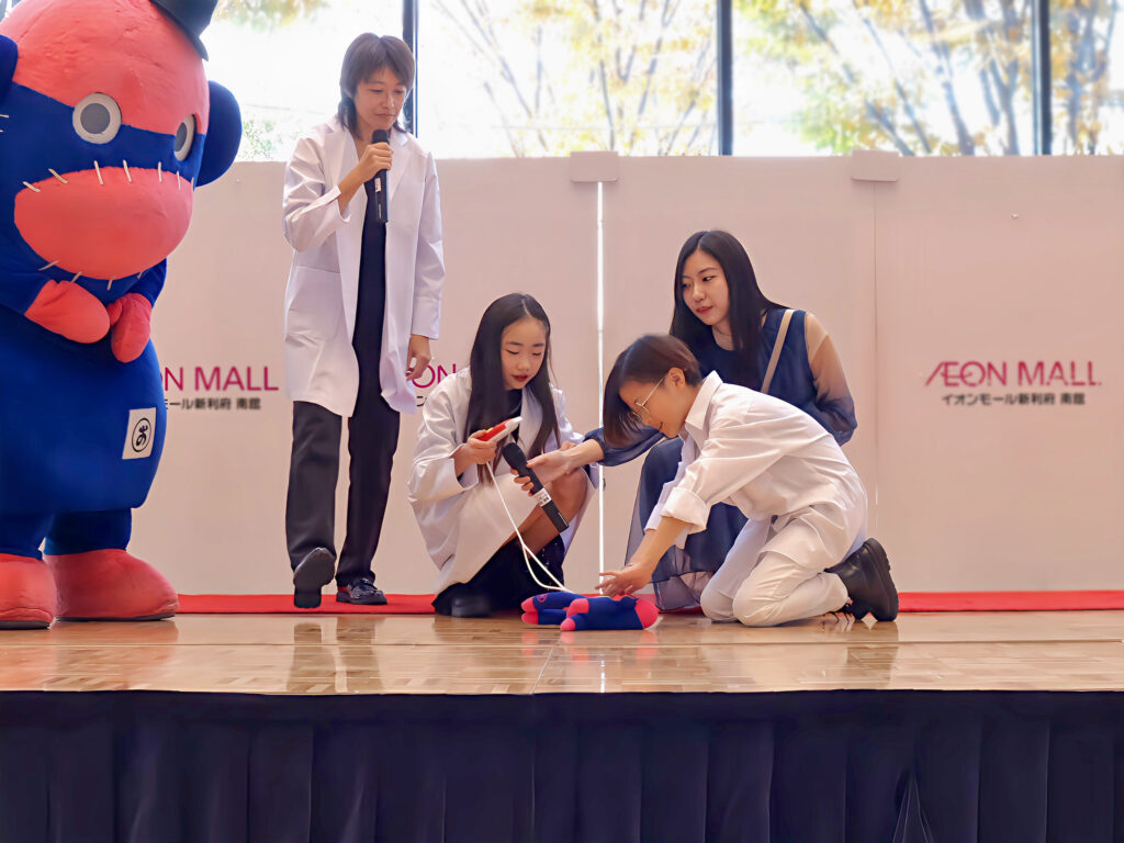 おのくんと公式モデルさん、そして来場者のみんなでつくりあげた**「防災サイエンスショー」**だじょ。