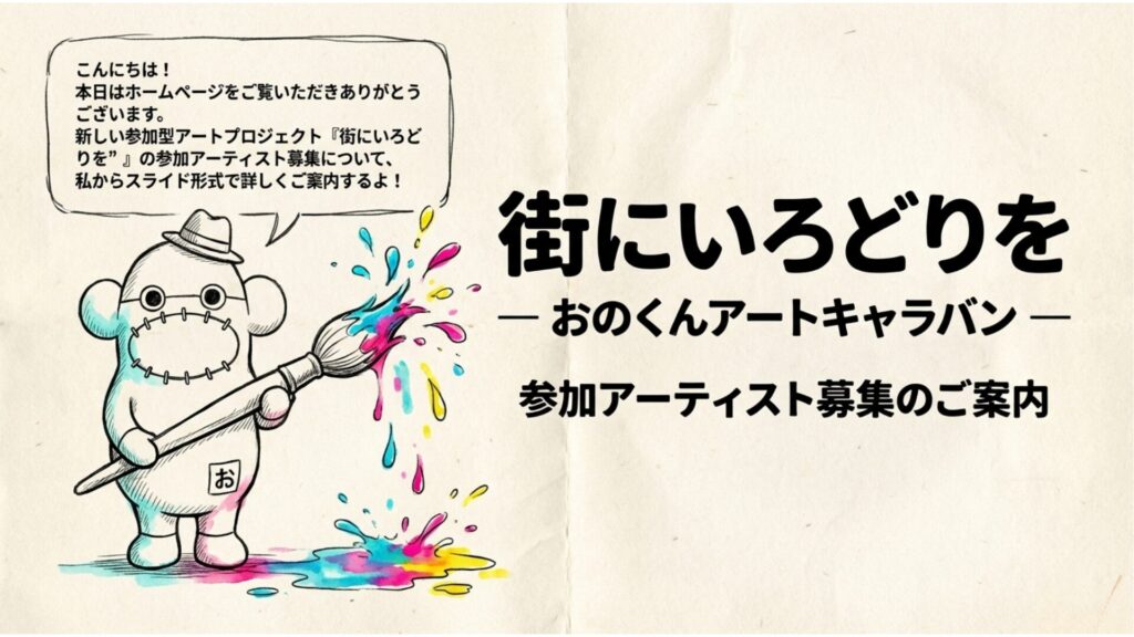 新しい参加型アートプロジェクト『街にいろどりを ― おのくんアートキャラバン ―』の参加アーティスト募集について